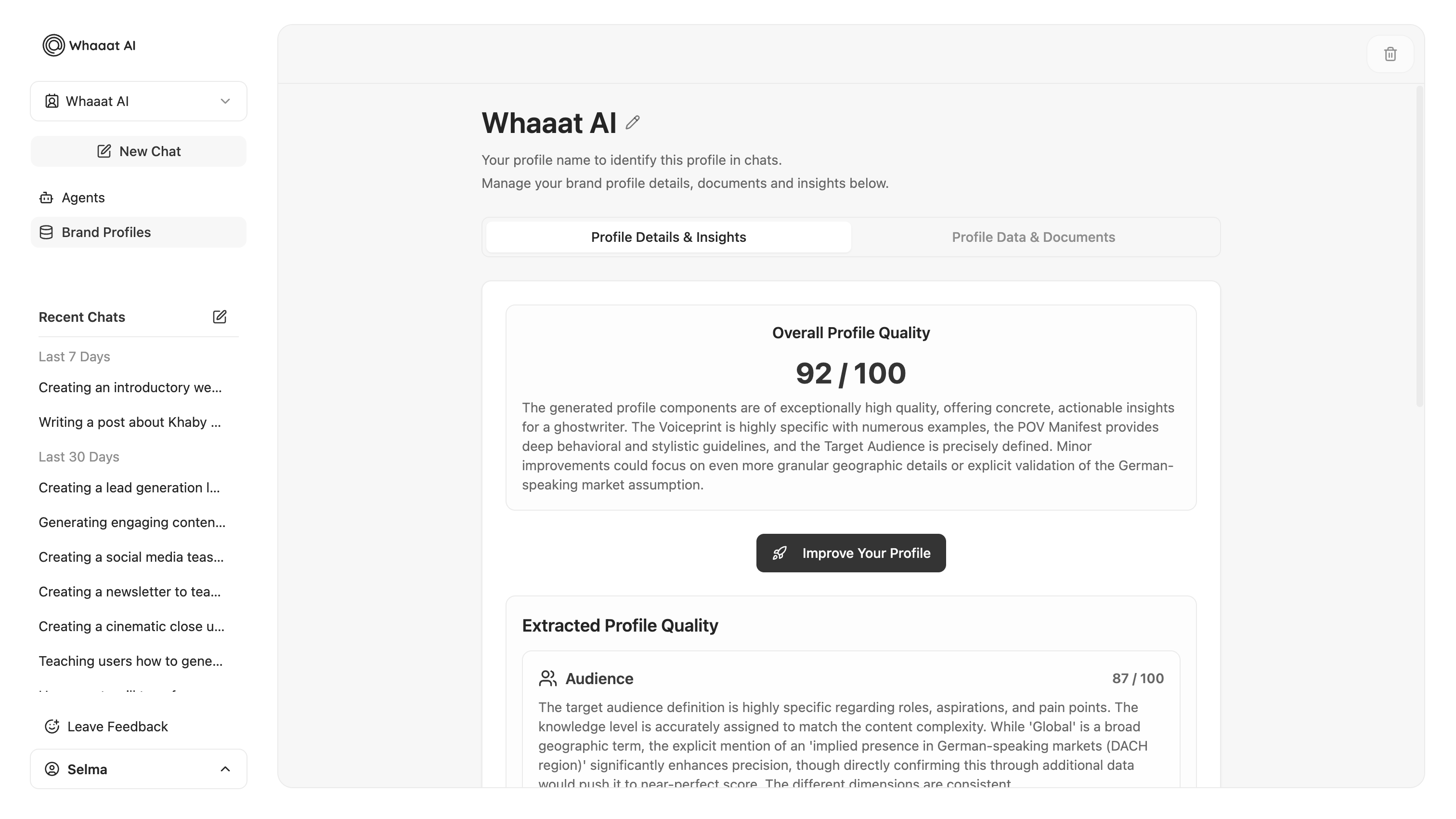 Mit unserem neuesten Update haben wir den Whaaat AI-Arbeitsbereich in Sachen Übersichtlichkeit, Kontrolle und schnellere Erstellung von Inhalten verbessert. Von einer klareren Einrichtung des Markenprofils bis hin zu einer intelligenteren Methode, mehrere Inhalte gleichzeitig zu erstellen, hat sich dein KI-Workflow gerade verbessert.